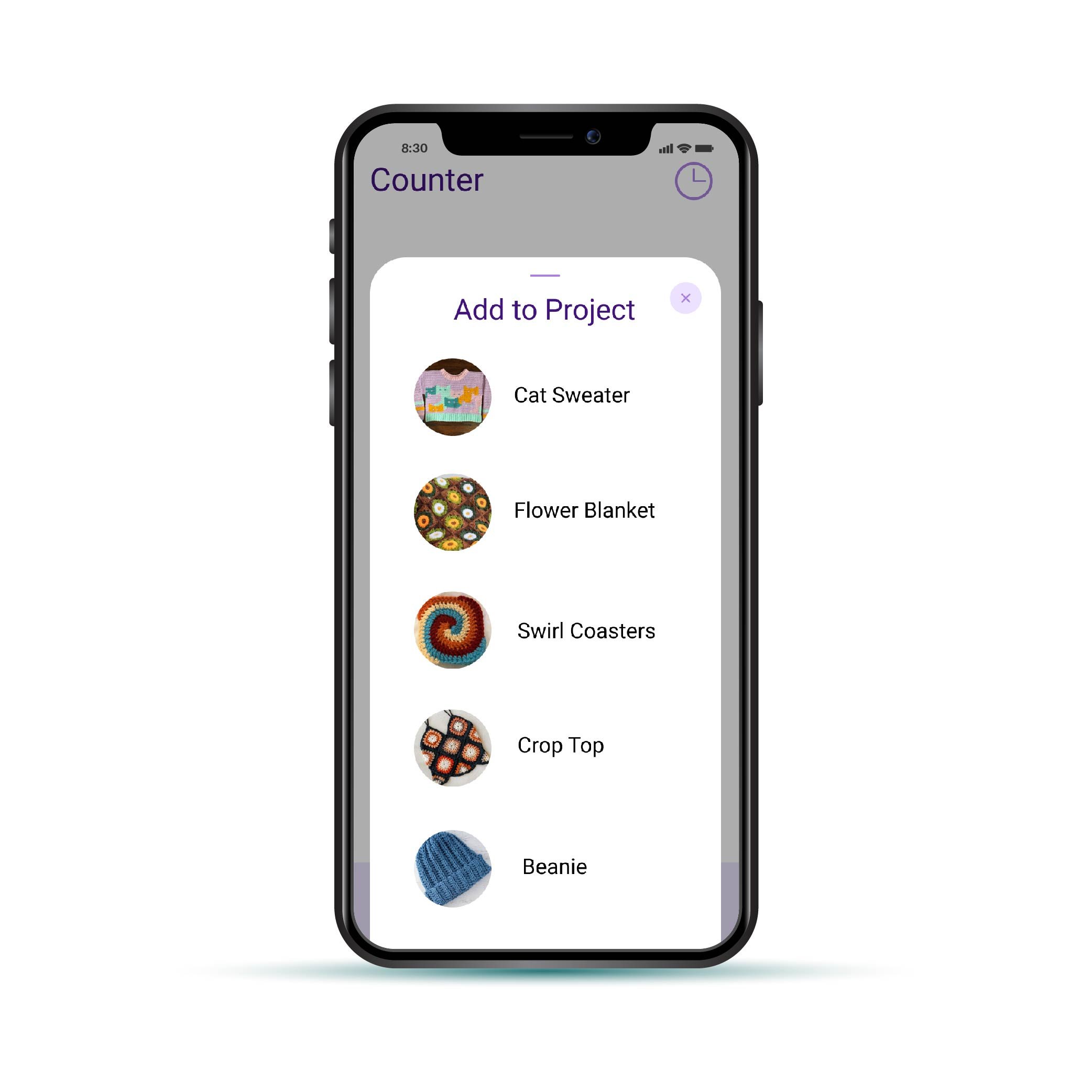 The “Counter” tab helps mark your place in a project when you pause working by counting the rows you have completed and how much time they took to complete. This is one way that the app tracks your progress and speed. Then you can add the progress you’ve tracked with the counter to a specific project. You can also manually input which row your are on in the project if you don’t wish to use the counter.